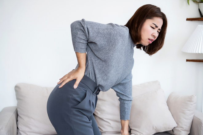 腰に激しい痛みが生じるケースが一般的ですが、お尻から太ももの横、膝下・すねの外側などに症状があらわれることもあるため注意しましょう。
